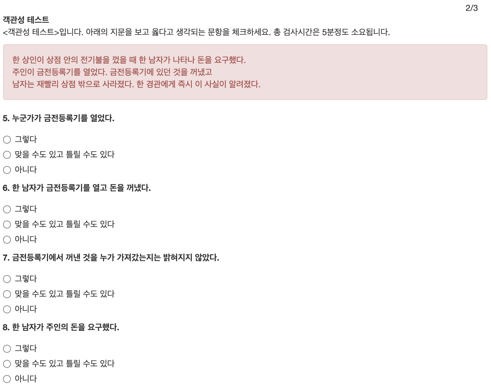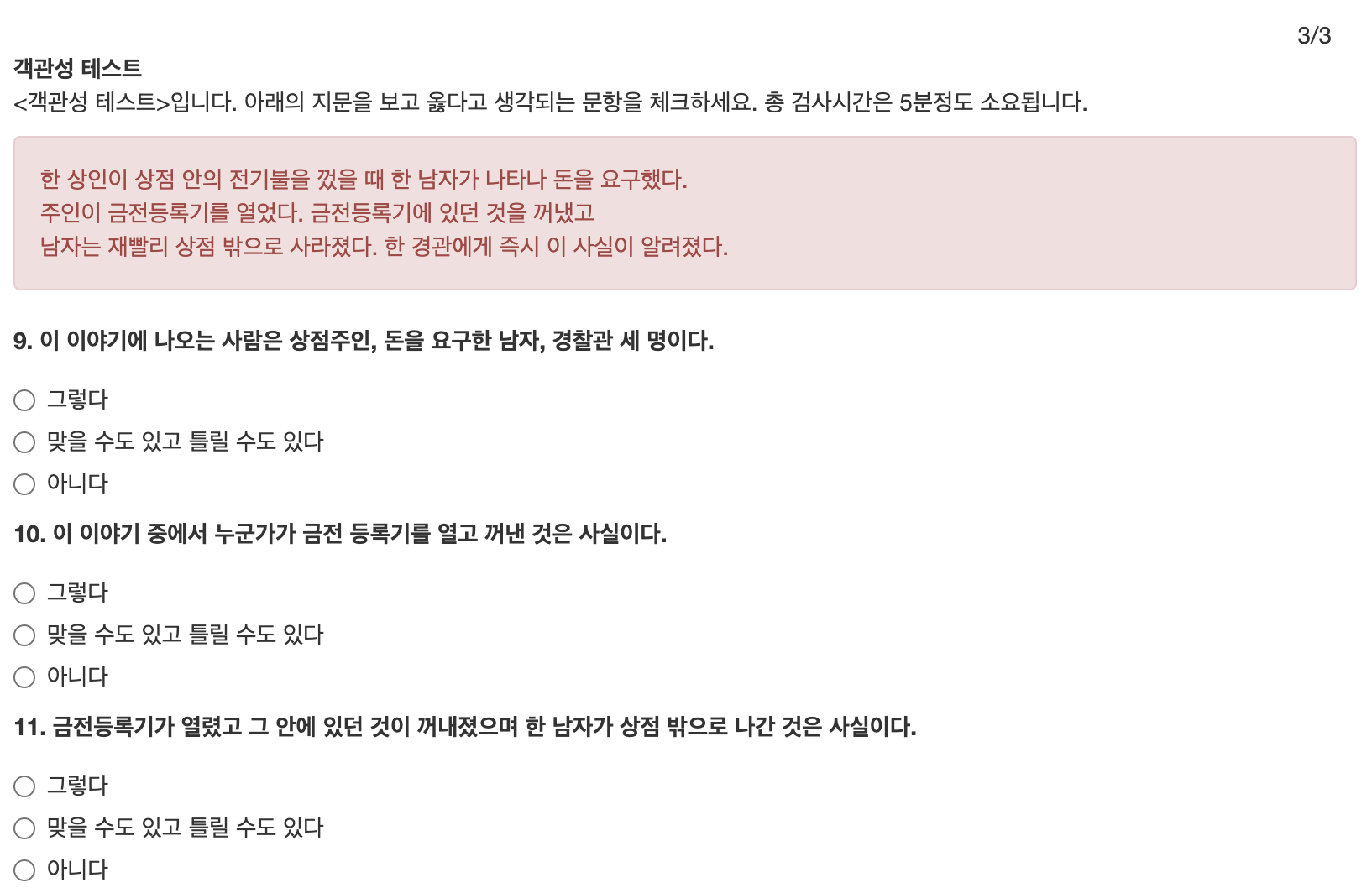 세가지 대답 중에 선택하셔야 합니다.
