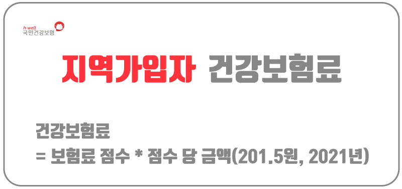 지역가입자의 건강보험료 부과 지역가입자의 보험료는 가입자의 소득, 재산(자동차 포함)을 참작하여 정한 부과요소별 점수를 합산한 보험료 부과점수에 점수당 금액을 곱하여 보험료 산정 후