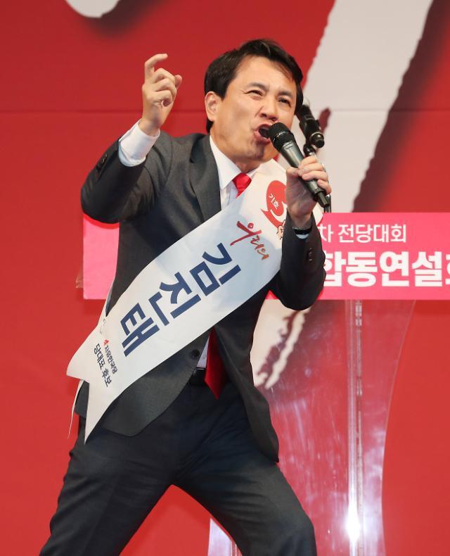 경선에서 연설하는 김진태 의원의 모습이다. 결국 이 공청회와 망언 사태의 후폭풍으로 인해 최종 결과는 3위로 마감하였다. 하지만 당내 강성보수층을 결집시켰다는 평가도 있다.
