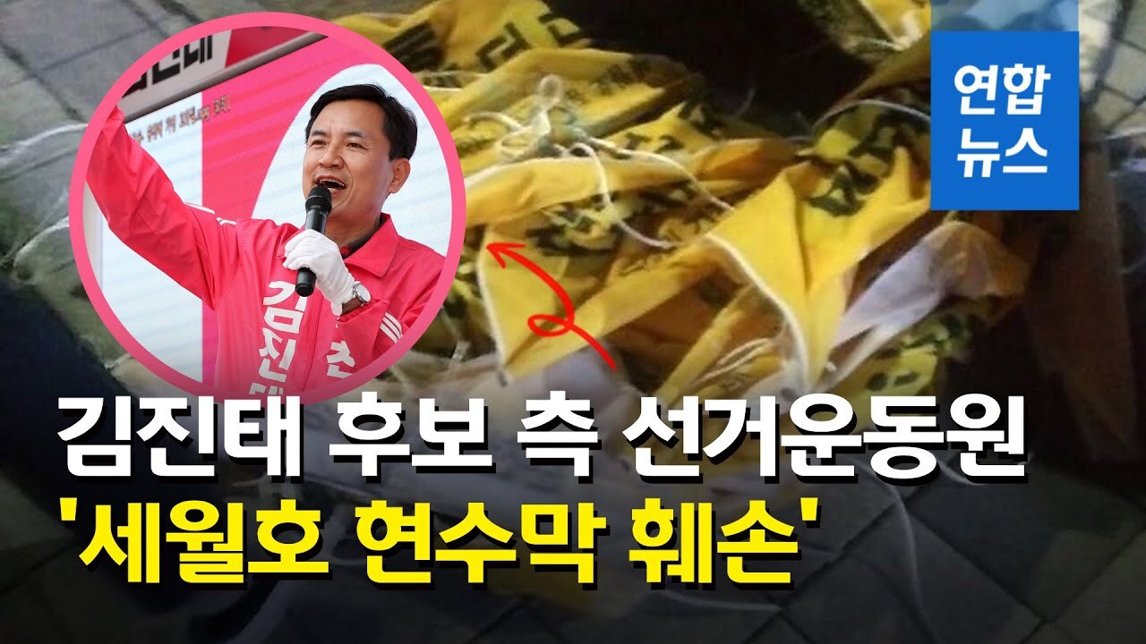 춘천시민행동은 이 현장에 김진태 후보의 선거운동 차량이 있는 점을 이상하게 여겨 출동한 경찰에게 정황을 설명하고 차량을 살펴봤다. 그 결과, 김 후보 선거운동 차량에서 훼손된 세월호 현수막 23장이 무더기로 나왔다. 아직 김진태 후보와는 연관이 없는 것으로 보이지만 이와 별개로 김진태 후보 측은 절체절명의 위기를 맞이하게 되었다.