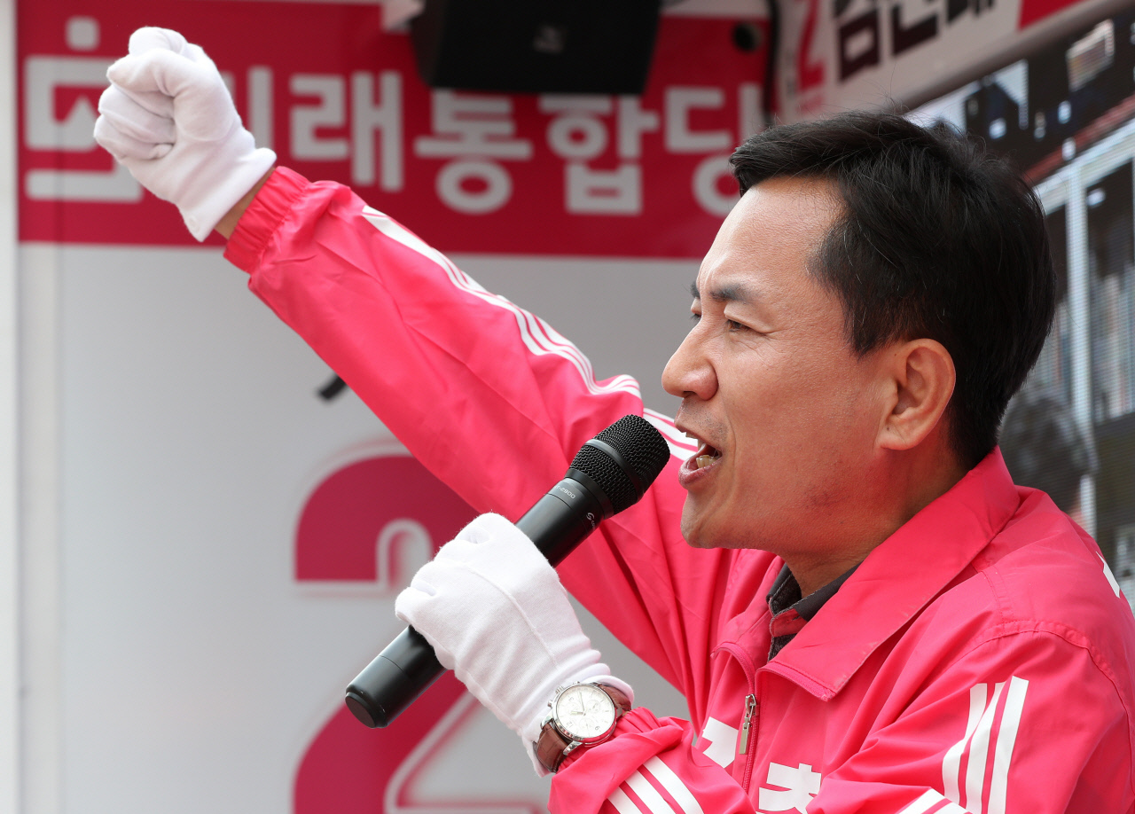 경선에서 연설하는 김진태 의원의 모습이다. 결국 이 공청회와 망언 사태의 후폭풍으로 인해 최종 결과는 3위로 마감하였다. 하지만 당내 강성보수층을 결집시켰다는 평가도 있다.