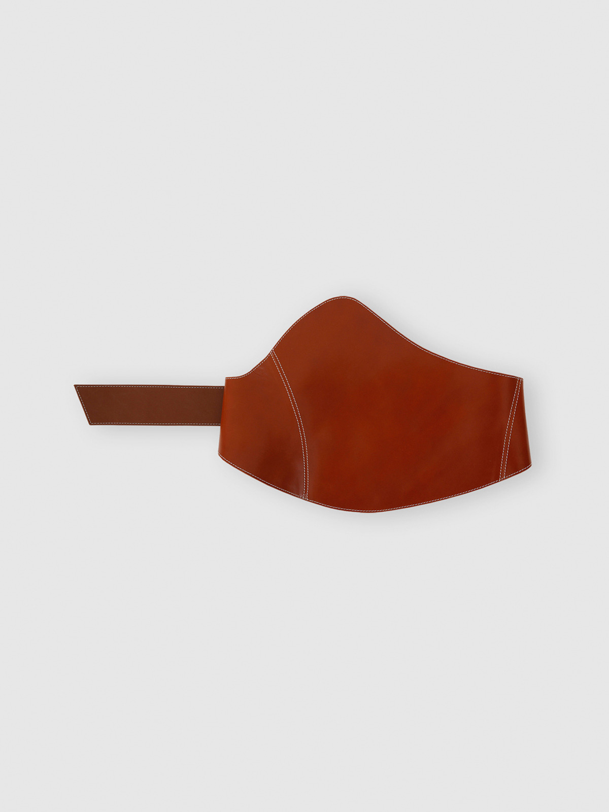 - 비대칭적인 곡선 모양의 가죽 벨트입니다. - 두 개의 스터드로 고정하여 착용할 수 있으며, 사이즈 조절이 가능합니다. - 드레스 위에 레이어드하거나 팬츠, 스커트와 함께 매치하여 포인트