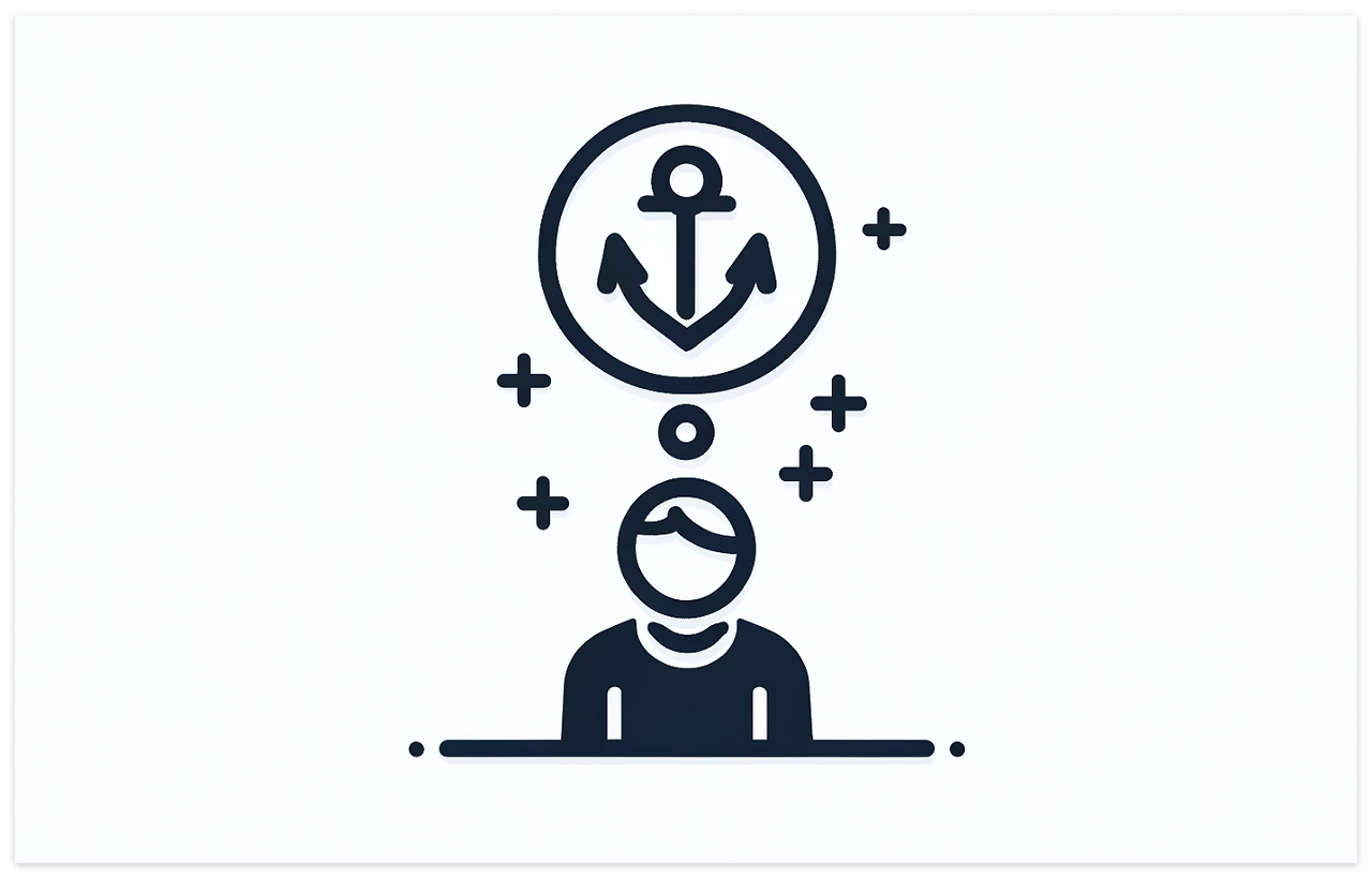 닻 내림 효과(기준점과 조정 휴리스틱, Anchoring and Adjustment Heuristic)은 심리학자 대니얼 카너먼(Daniel Kahneman)과 아모스 트버스키(Amos Tversky)가 1974년에 처음으로 제안했습니다. 그 내용은 '사람들이 초기 정보(기준점)에 지나치게 의존하여 이후의 결정을 내리는 경향이 있다'는 것인데요.