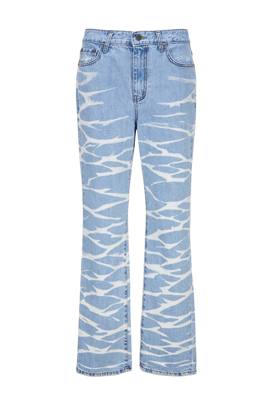 제니님이 입은 바지는 더오픈프로덕트의 ACID WASH STRAIGHT JEAN 제품, SKY BLUE 컬러입니다.