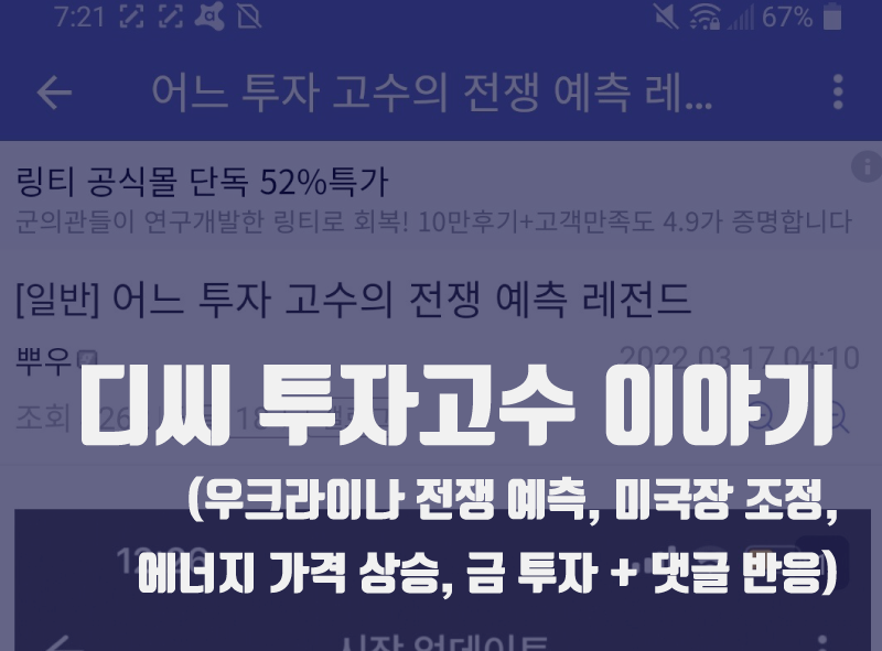 디씨 투자고수 이야기 (우크라이나 전쟁 예측, 미국장 조정, 에너지 가격 상승, 금 투자 + 댓글 반응)