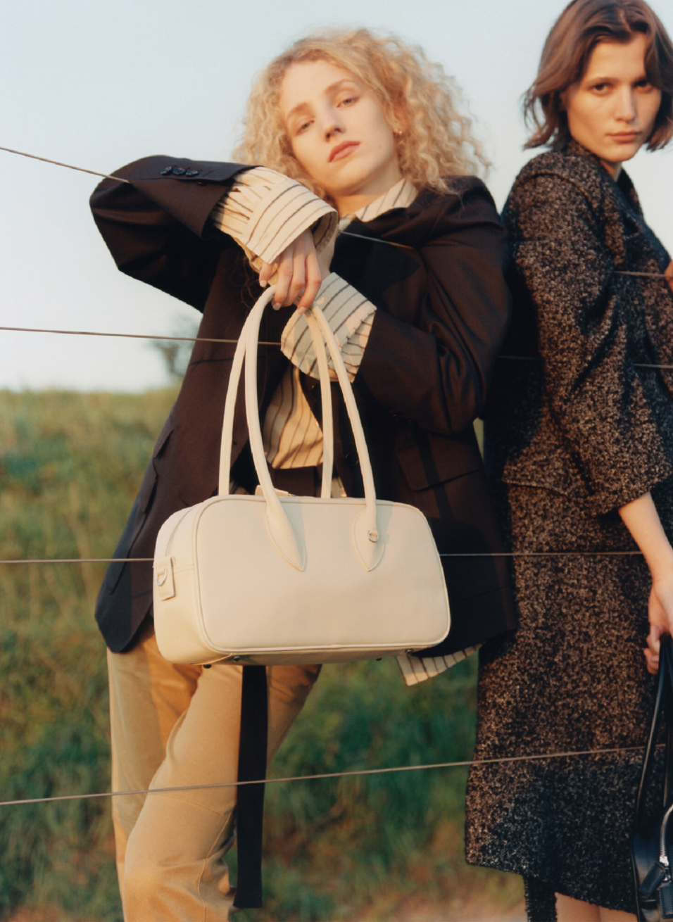 가방은 더오픈프로덕트(The open product)의 BOWLING LEATHER HANDBAG 제품이에요.