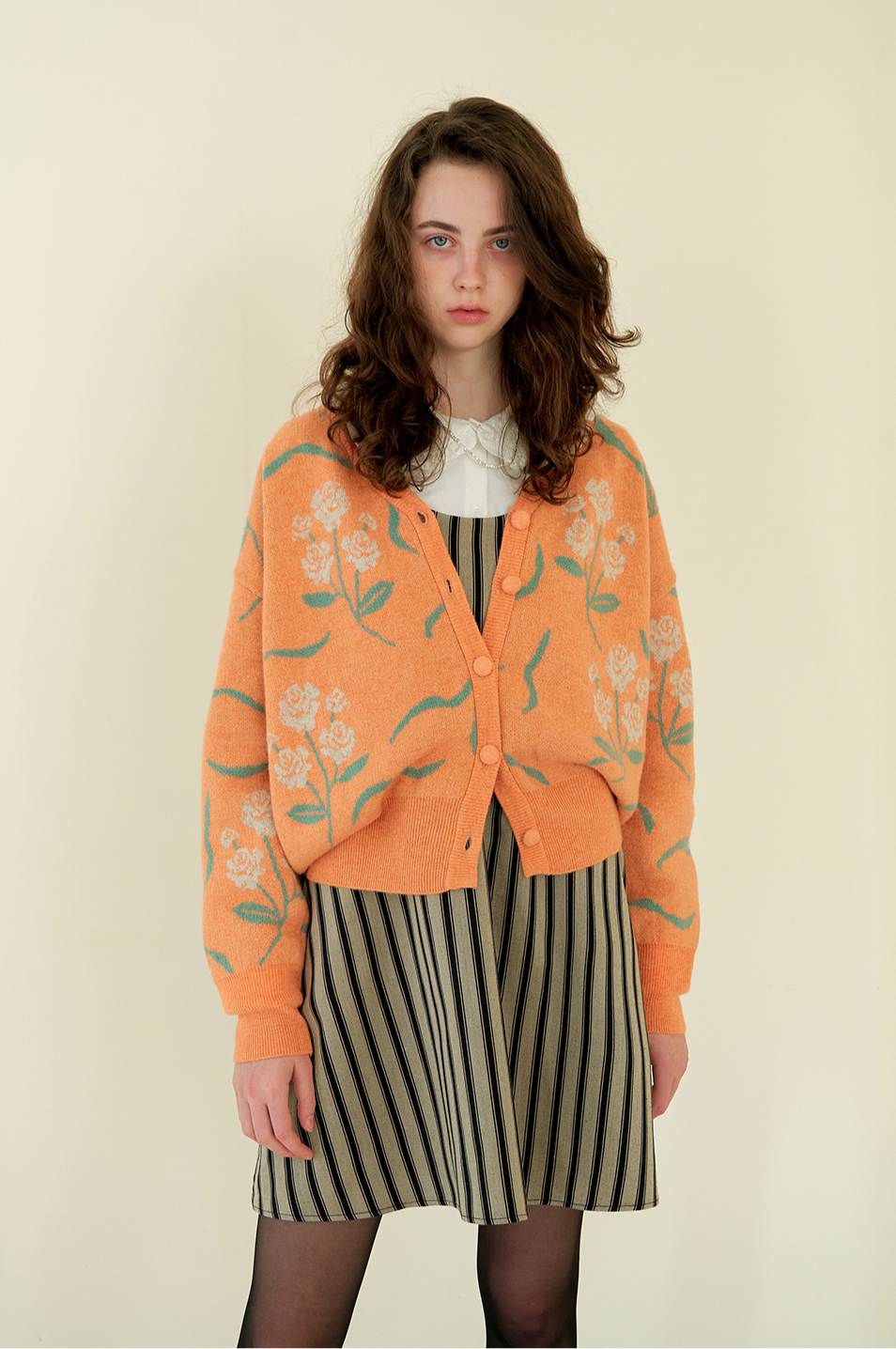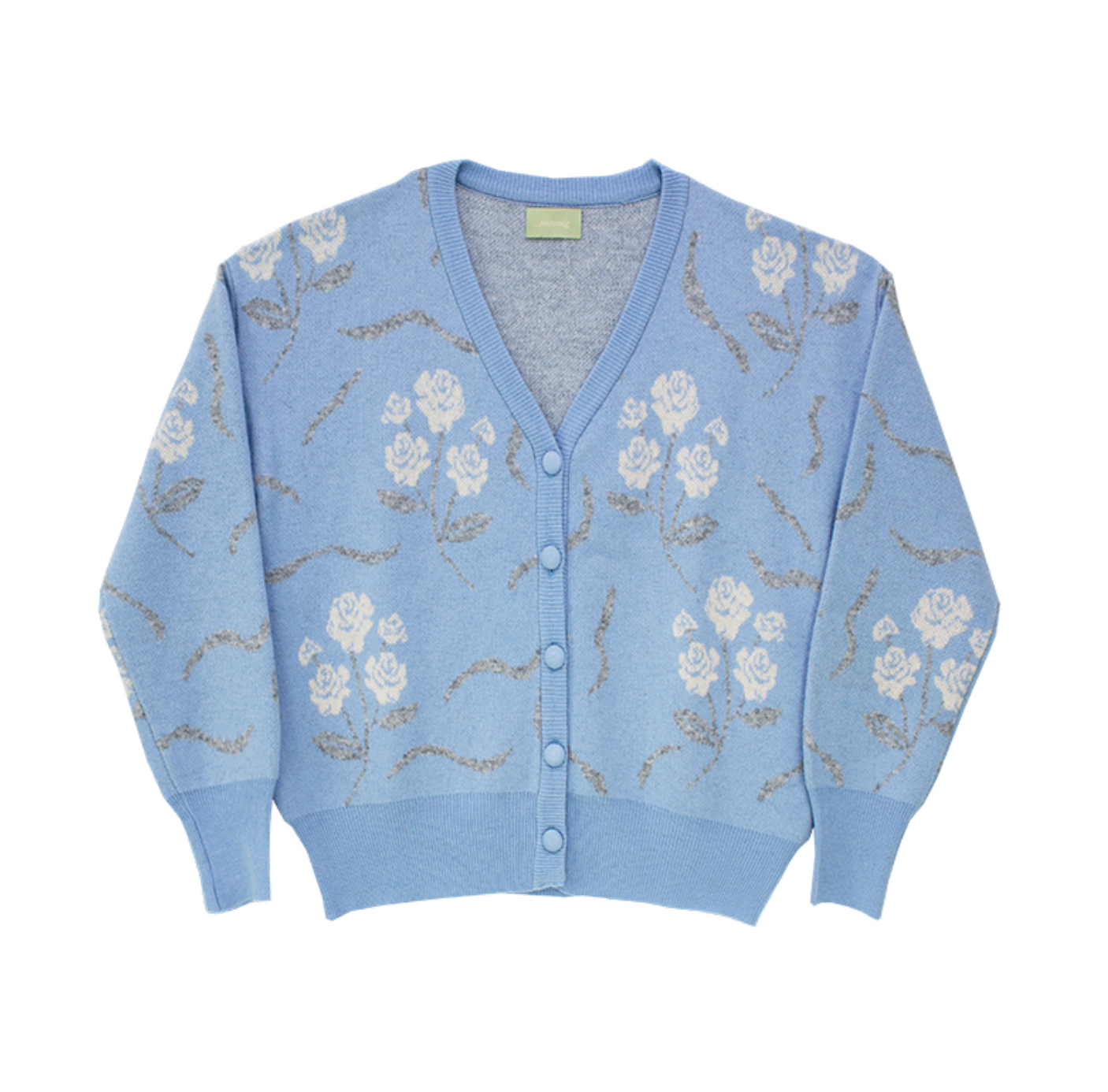 시눈의 빈티지함과 로맨틱함을 모두 담은 블레이브 가디건입니다. 포근한 스카이 컬러 바탕에 아이보리와 그레이 컬러의 모티브가 부드러운 무드를 연출합니다.