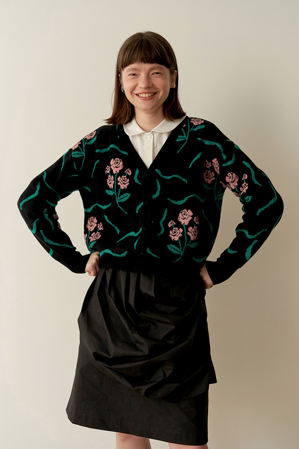 시눈의 빈티지함과 로맨틱함을 모두 담은 블레이브 가디건입니다. 포근한 스카이 컬러 바탕에 아이보리와 그레이 컬러의 모티브가 부드러운 무드를 연출합니다.