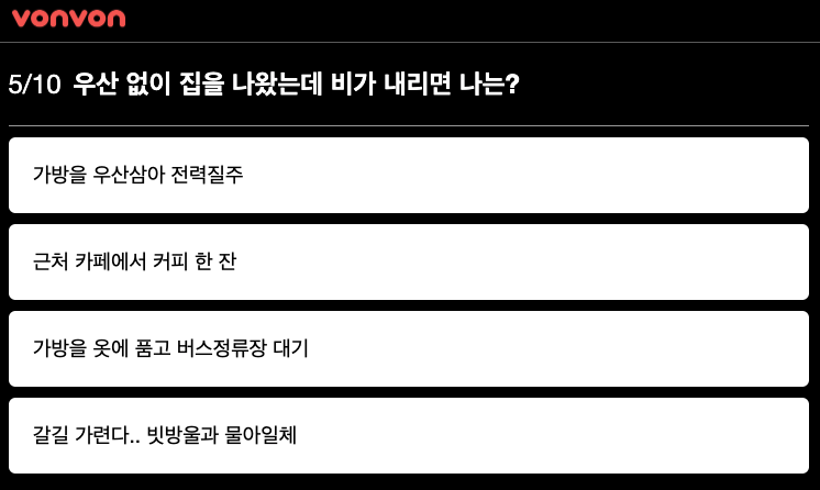 5. 우산 없이 집을 나왔는데 비가 내리면 나는?