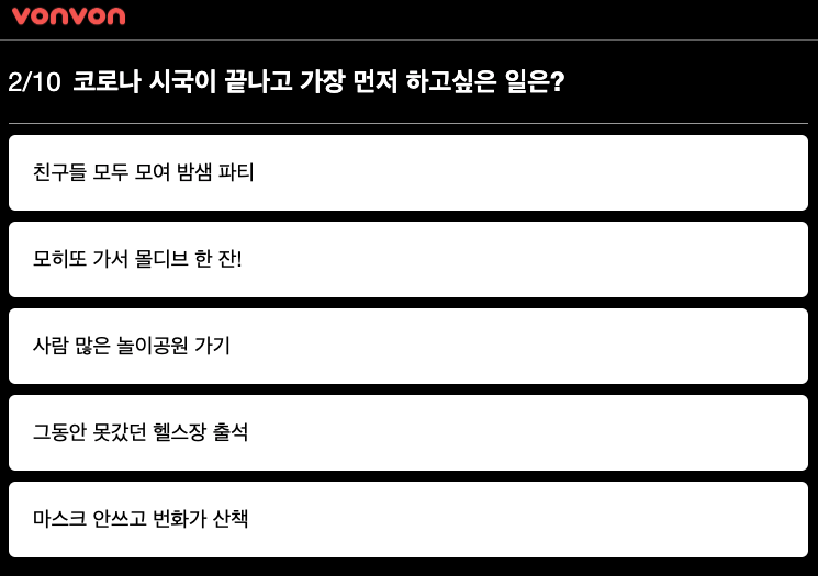 2. 코로나 시국이 끝나고 가장 먼저 하고싶은 일은?