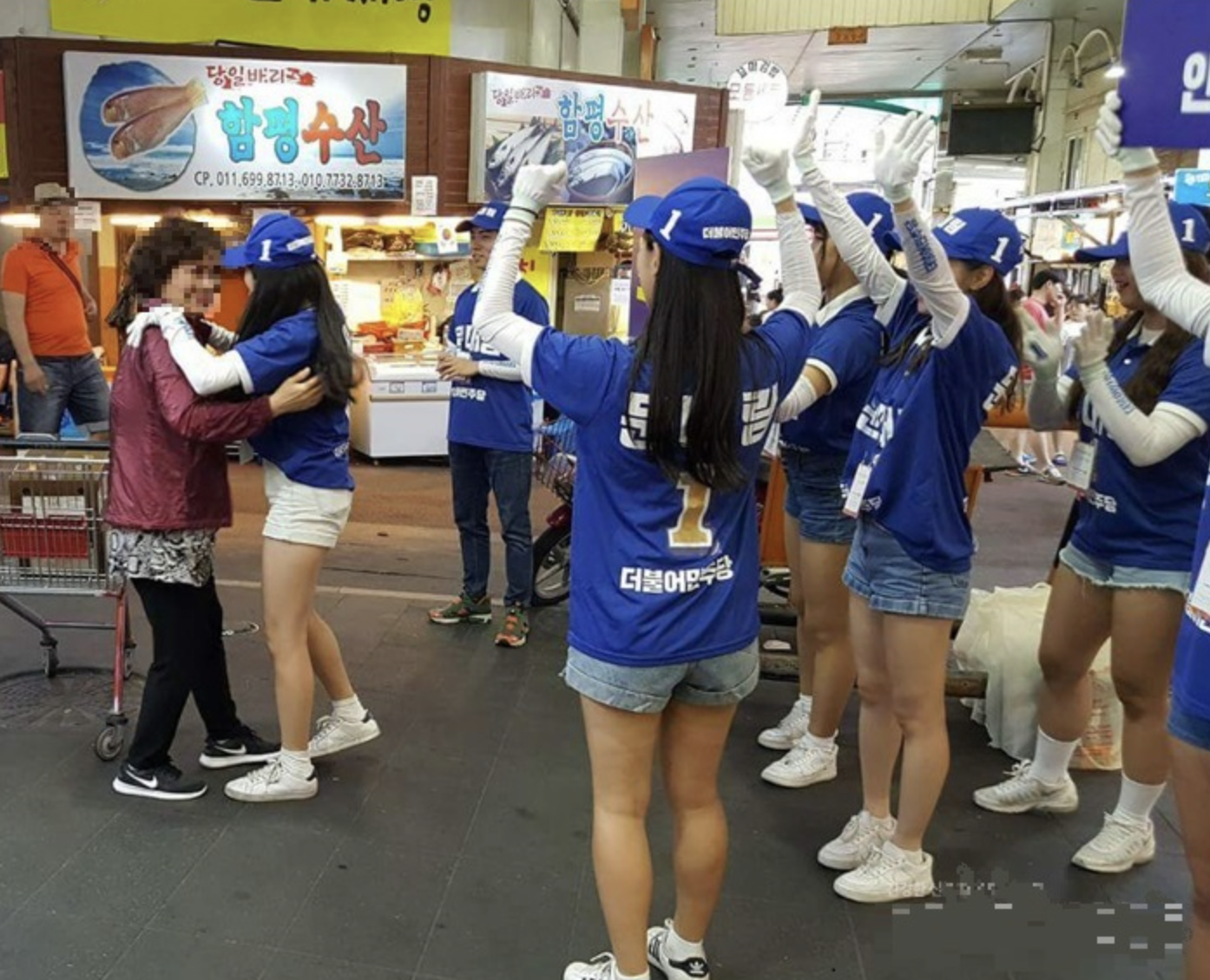 여성 운동원 '핫팬츠 프리허그' 논란
