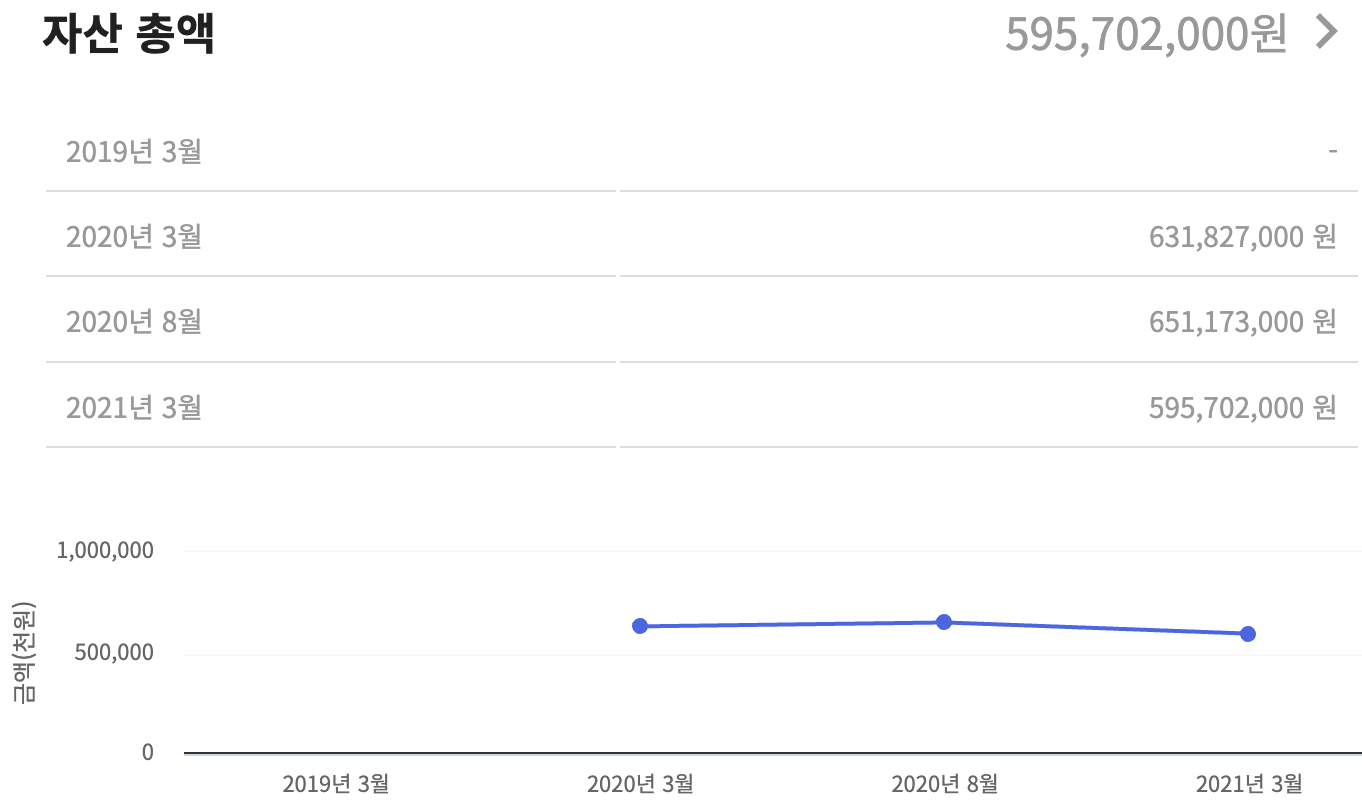 2021년 3월 기준 5억 9570만 2천원을 신고했다. 이는 전년도 대비 3600만원 줄어든 액수이다.