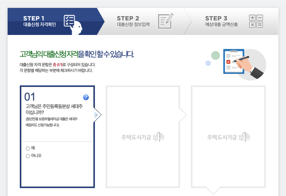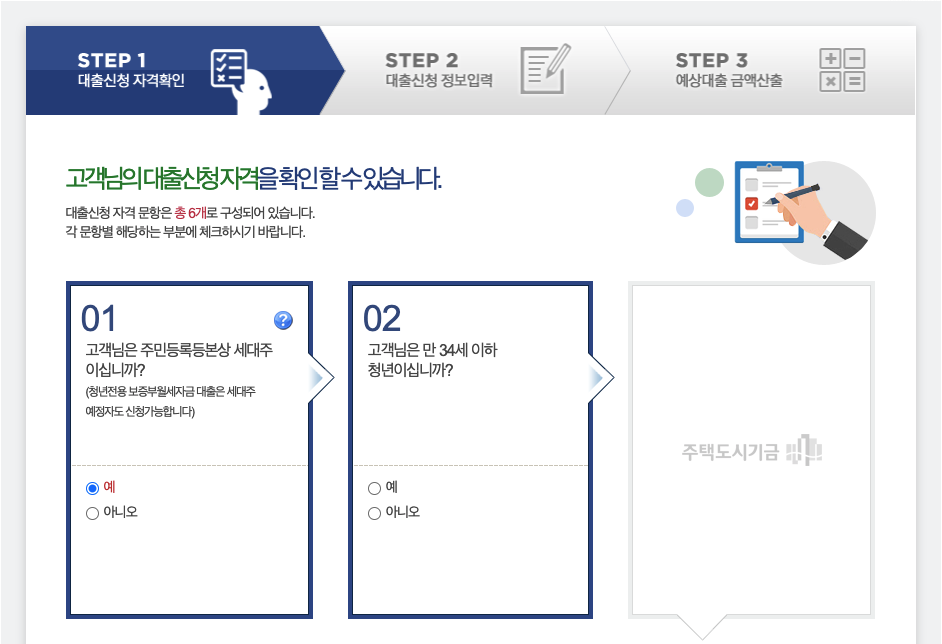 - STEP1. 대출신청 자격확인
