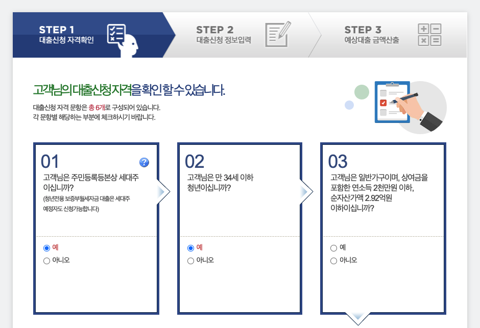 - STEP1. 대출신청 자격확인