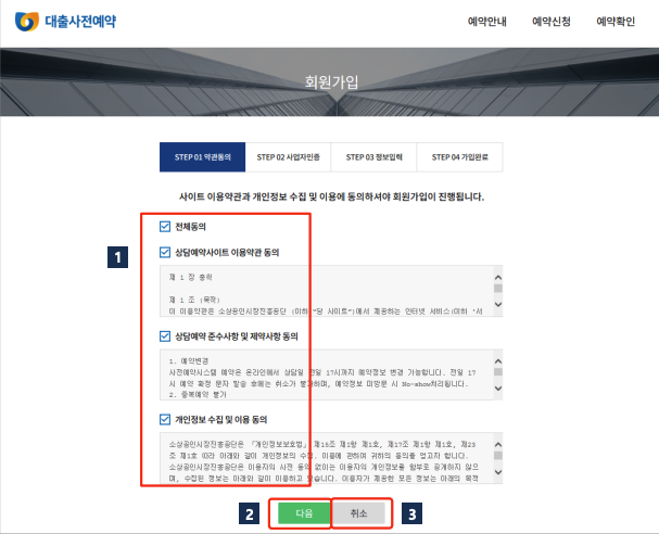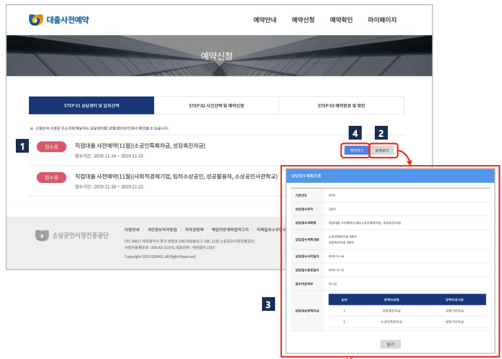 대출사전예약은 사업자등록증이 있는 소상공인이 이용할 수 있습니다.