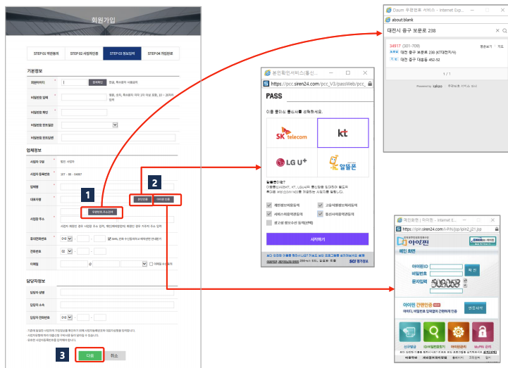 대표자 본인 인증을 합니다. 인증은 [휴대폰 인증] 또는 [아이핀 인증]으로 가능합니다.