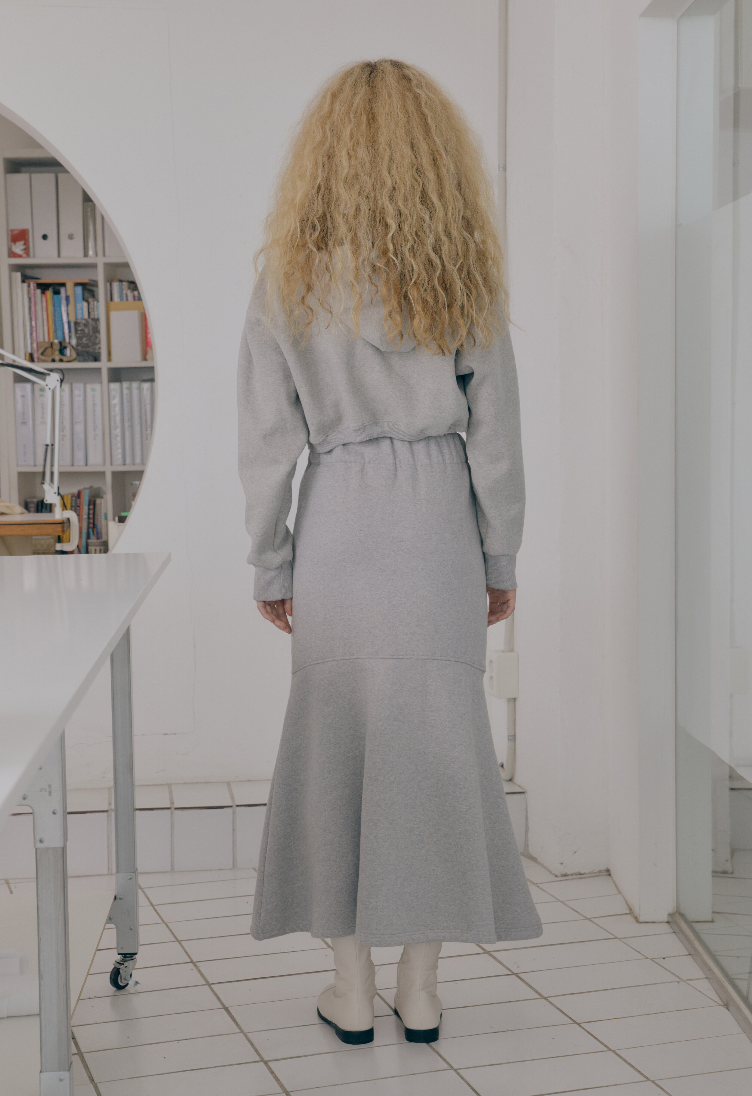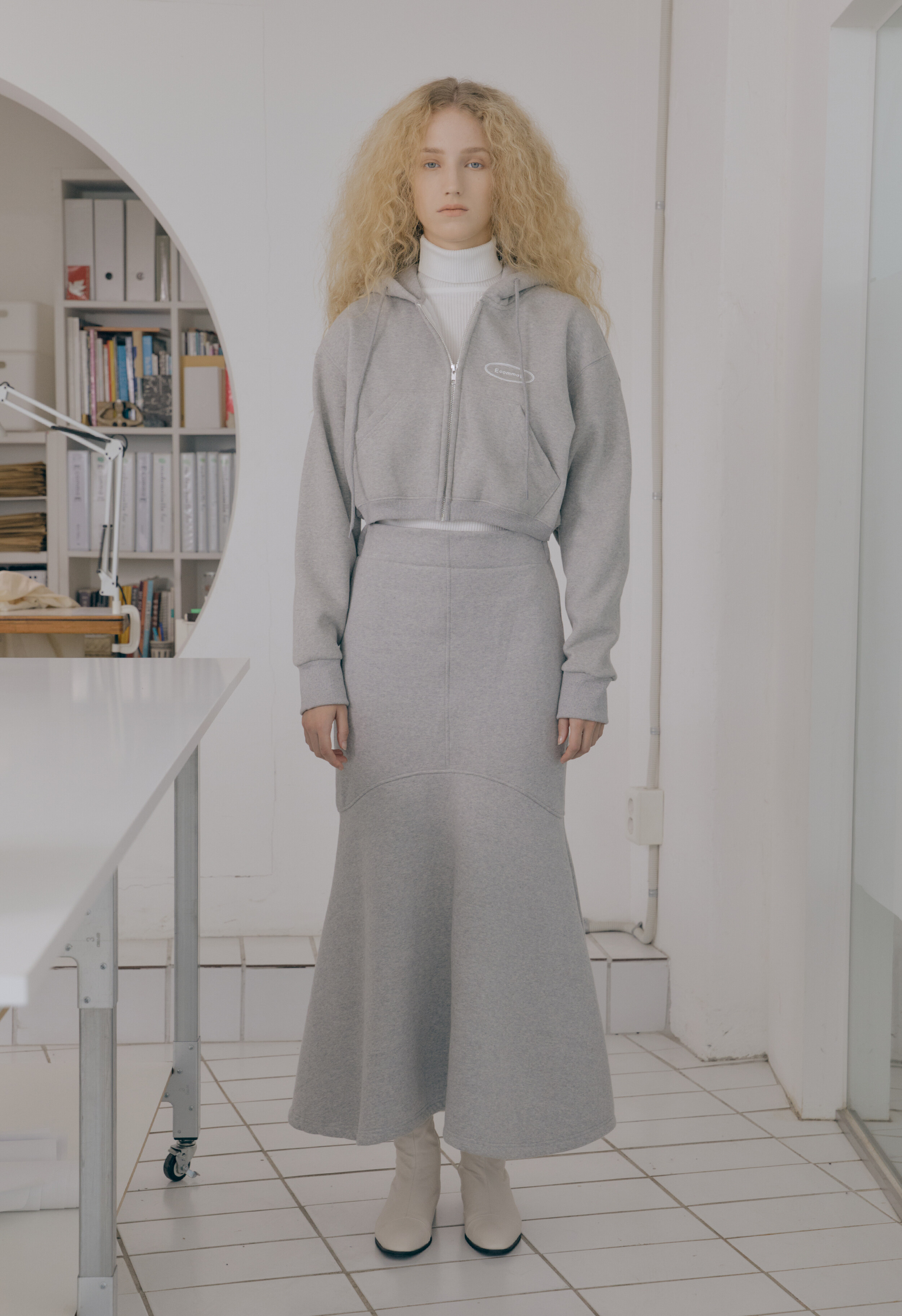 EcommaE(이콤마이)의 CROPPED HOODIE, FLARE SWEAT SKIRT (GRAY) 색상이에요.
