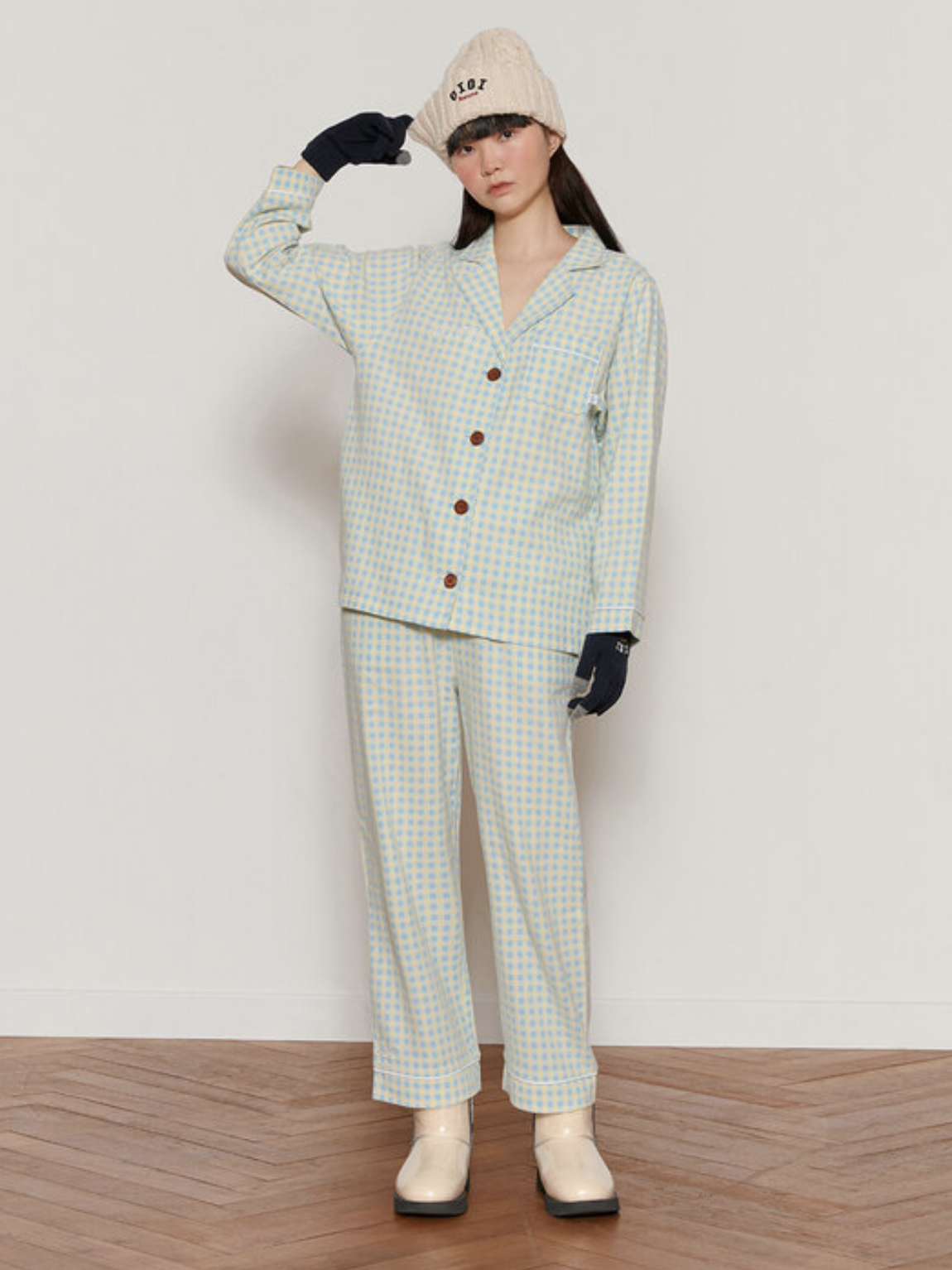 LOGO FLANNEL PAJAMAS [YELLOW CHECK] 색상이고 세트 가격 8만원대입니다.