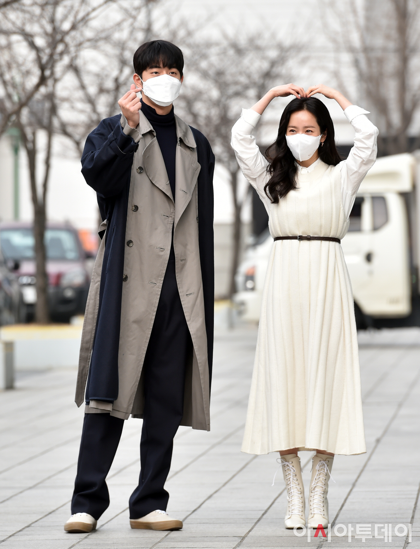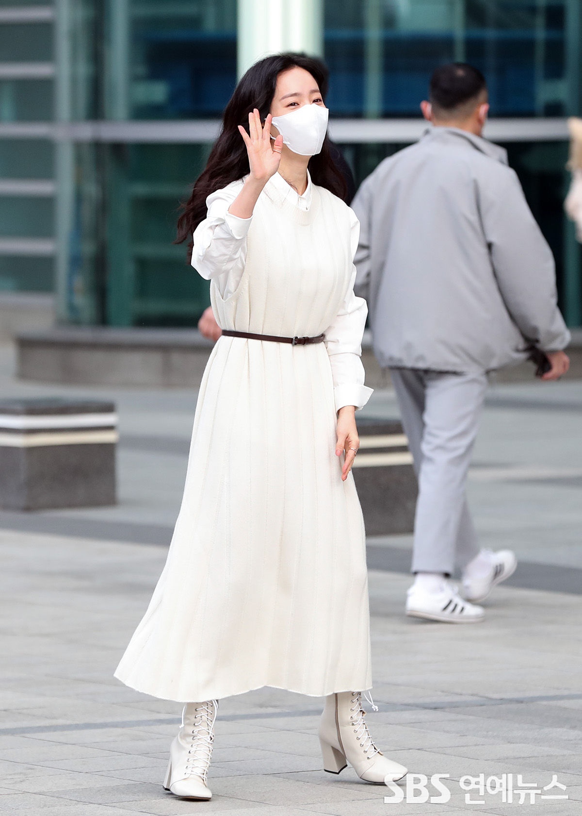 이 제품은 한지민님도 라디오 출근길에 착용했어요. 키가 커보이도록 화이트 니트 원피스랑 톤을 맞췄네요!