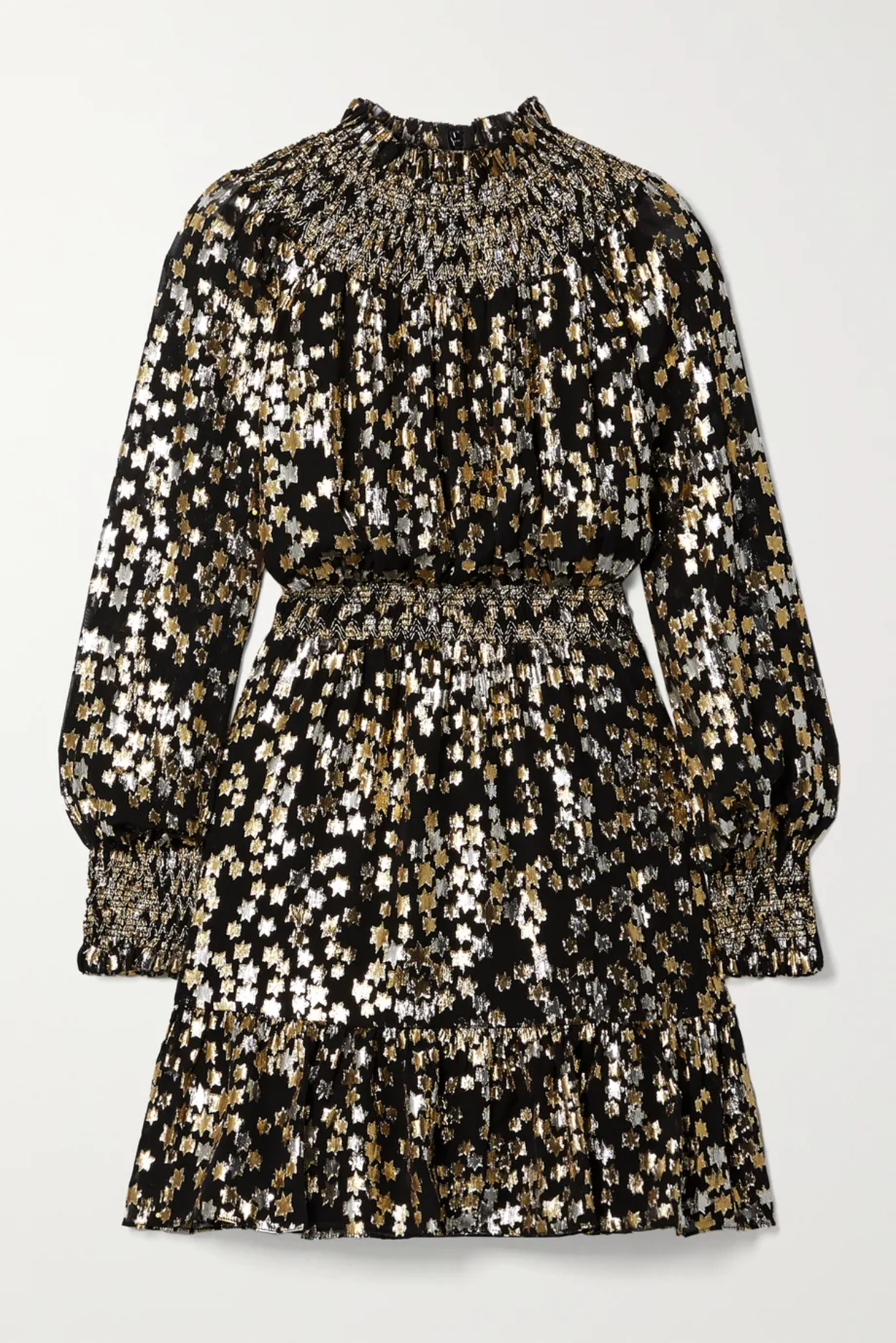 아이유님이 착용한 원피스는 MICHAEL KORS(마이클 코어스)의 Star Metallic Fil Coupé Silk Blend Mini Dress 입니다.