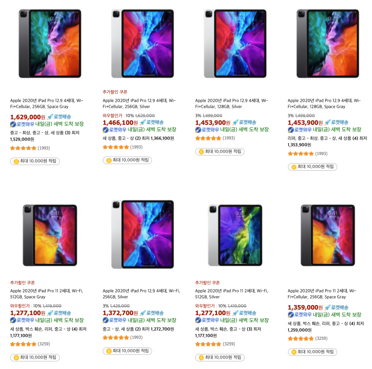 아이패드는 10% 할인을 하는 상품도 있습니다.