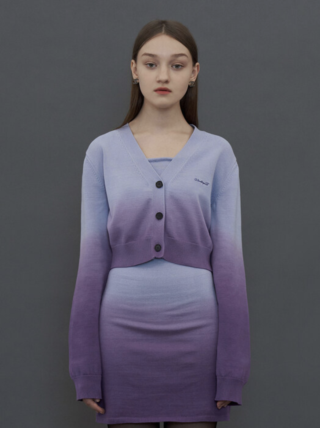 가디건도 ANALLOYED (어널로이드)제품으로, GRADATION LOGO CARDIGAN BLUE 색상입니다.
