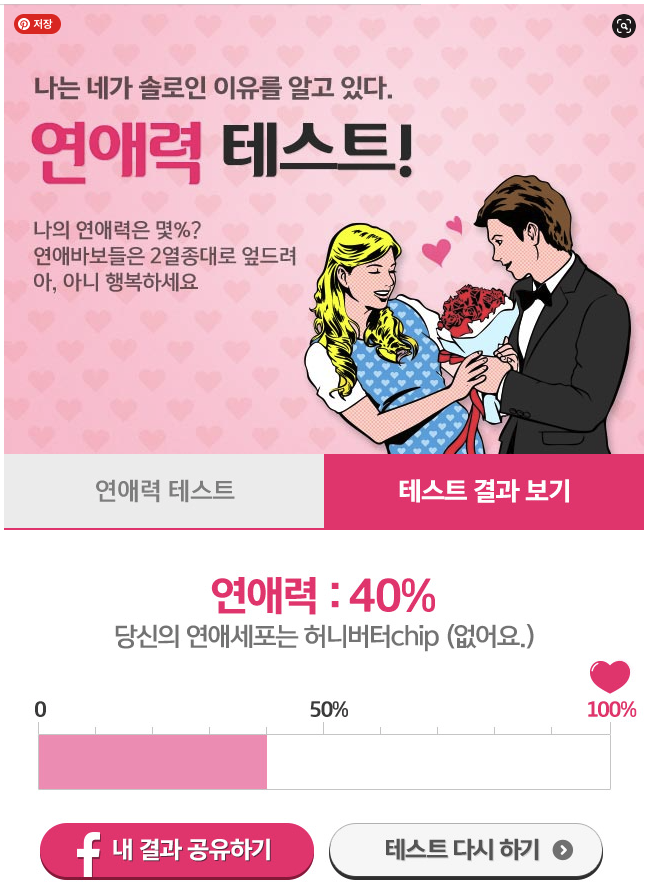 연애력 테스트 링크 주소/나의 연애력은 몇%?
