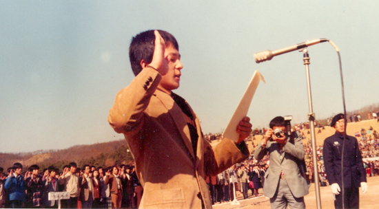 하지만 1982년 대학진학 이후 신군부 독재의 폭압적 정치현실과 5.18 광주민주화운동의 진상을 깨닫게 되었다. 대학 1학년 때 서울대학교 인문대학이 중심이 된 지하서클 '사회복지연구회'에 가입해 체계적으로 사회과학을 공부하면서 사회의식에 더 눈을 뜨게 되었다. 그러다 서울대 구내에서 전경들의 여학생 추행사건이 일어나자 이에 분노하여 항의시위에 참가하게 되었고, 호주머니에서 시위 관련 유인물이 발견되어 관악경찰서로 연행되었다. 며칠 구금되었다가 훈방 조치가 되긴 했지만 학교로부터 유기정학을 받게 된다. 당시 서울대 수석 입학생의 유기정학 조치는 대학가에서도 매우 충격적인 소식이었다고 한다.