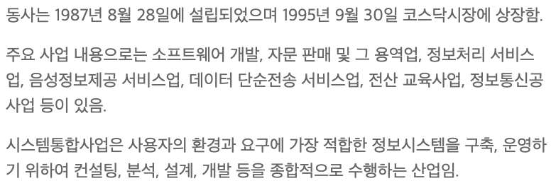 대신정보통신은 ICT 인프라, 정보시스템 구축을 기반으로 시스템 통합 사업부문이 전체 매출의 94%를 차지하고 있습니다.
