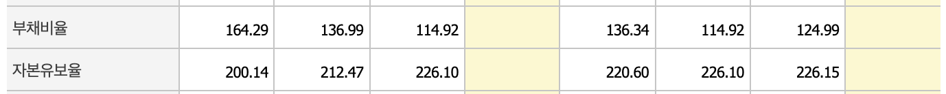 매출은 지지부진하지만 부채비율과 자본유보율 면에서는 안정적인 모습입니다.
