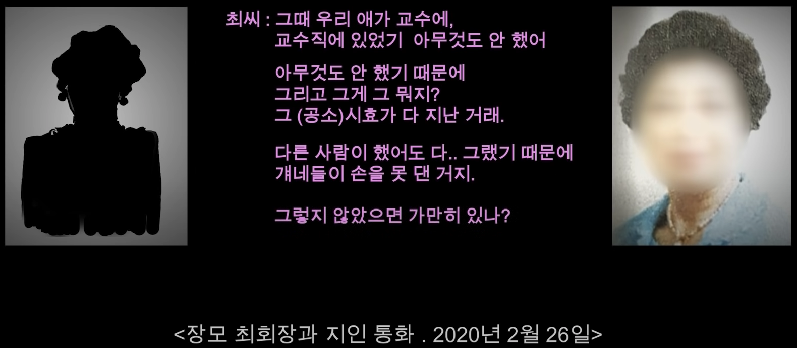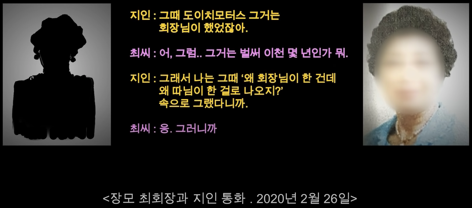 이 내용은 잊혀지는가 했는데 2020년 2월에 경찰의 내사 보고서가 언론에 흘러나오면서 다시 주목을 받습니다. 그리고 2020년 9월에 주가조작 연루자는 김건희가 아니고 장모 최회장이라는 보도가 나옵니다. 이 사실은 최회장의 과거 동업자였던 사람과의 전화통화 녹취록을 통해 알려집니다.