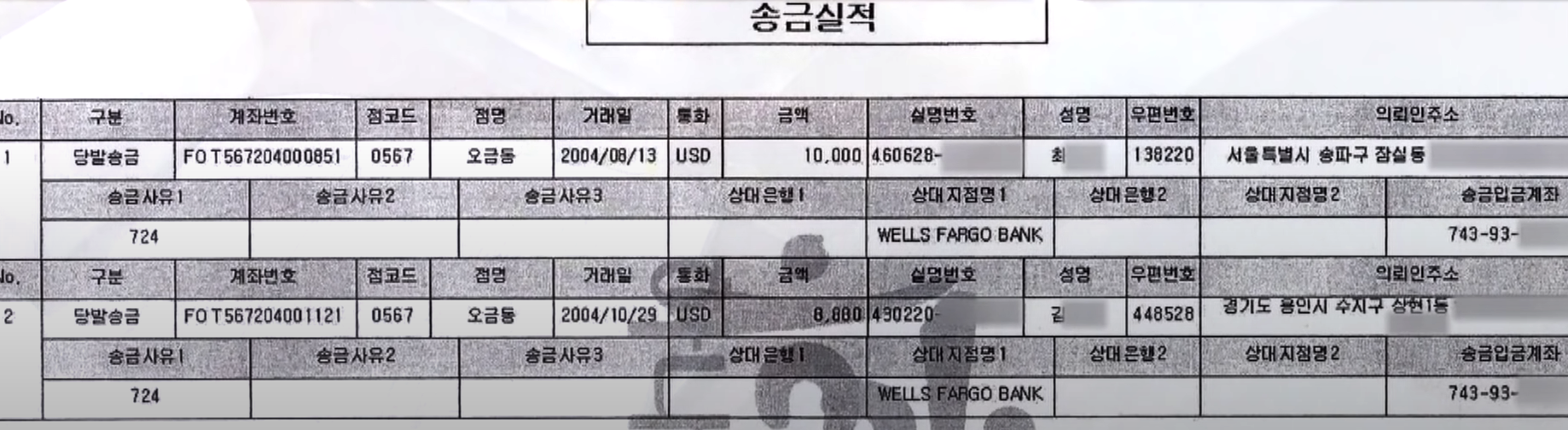 정대택씨가 강요죄로 기소될 당시 미국에 있던 양모 검사의 부인에게 최 회장이 10000달러를 보내고, 정대택씨가 실형 선고를 받을 당시에는 8800달러를 보냅니다. 당시 환율로 총 2200만원가량입니다.