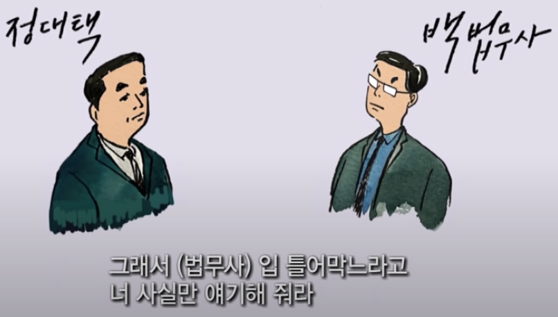 1심에서 약정에 입회한 백 법무사가 증인으로 나와 "협박과 강요가 있었다."고 증언하면서 최회장이 승소하게 됩니다. 정대택씨는 징역 1년을 선고받고, 투자금은 역시 최회장이 전부 꿀꺽하죠.