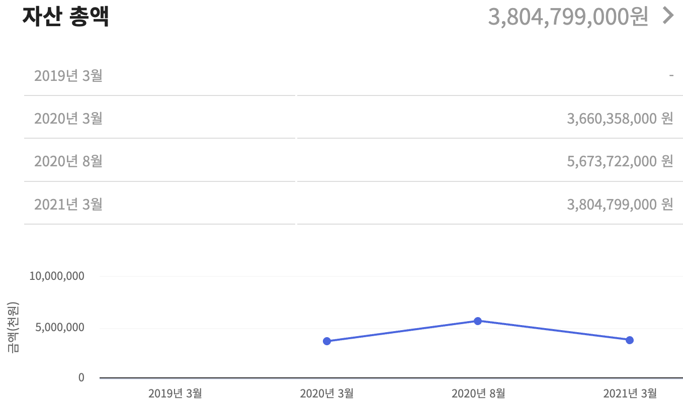 2021년 3월 기준으로 38억 479만 9천원을 신고했다.