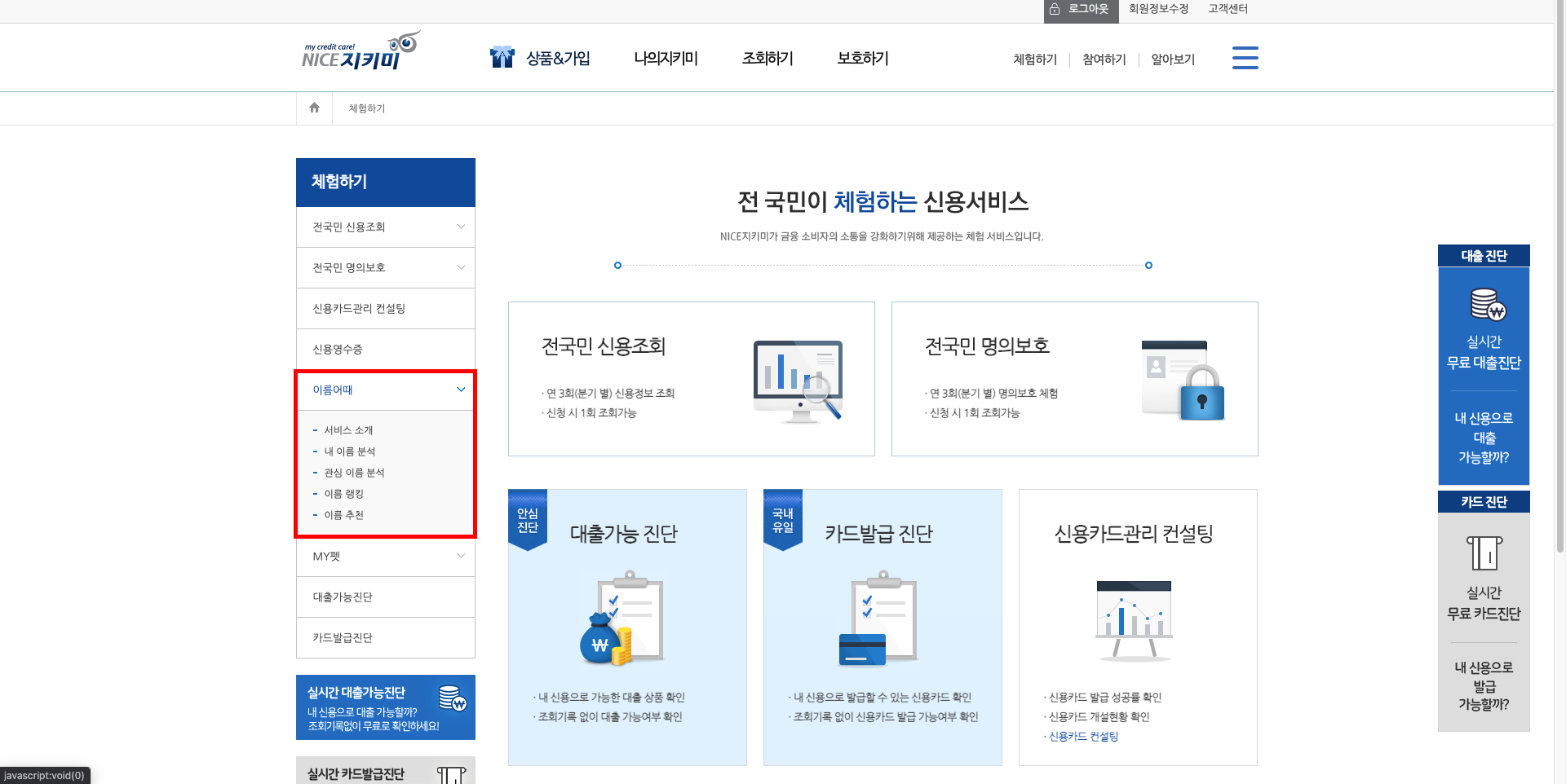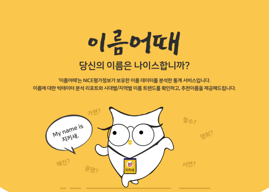 작년에 한창 테스트 열풍이 불더니, 올해도 이 추세가 계속 되는 것 같네요. 오늘 소개해드릴 서비스는 <나이스지키미>에서 운영하는 <이름어때> 체험입니다.