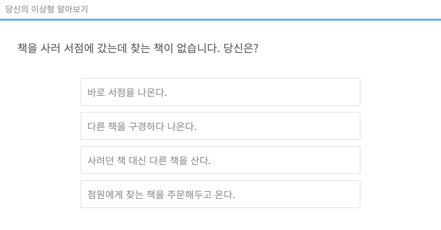 근데 내용이 이상형이 어떤지가 아니라 내 성격이 어떤지에 대해 나오는 것 같은...
