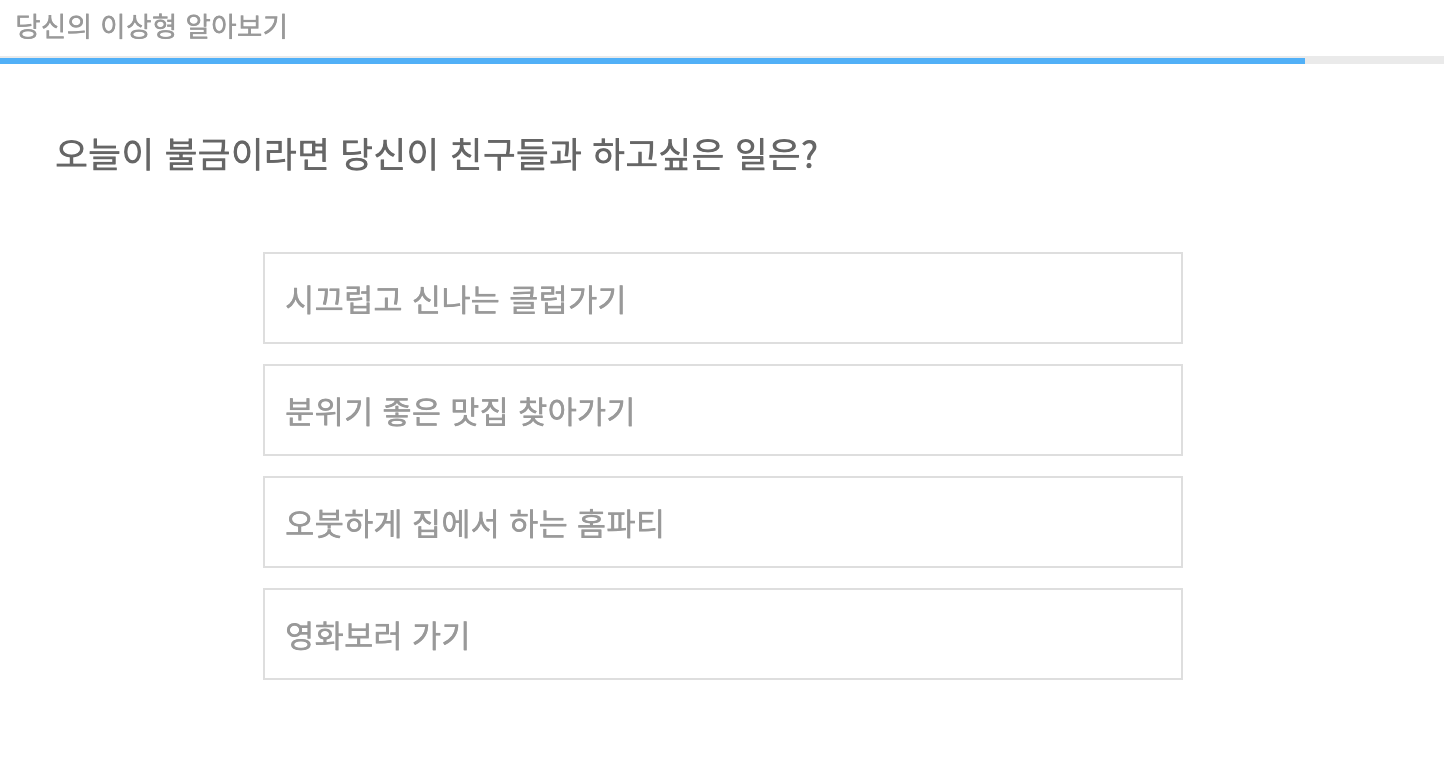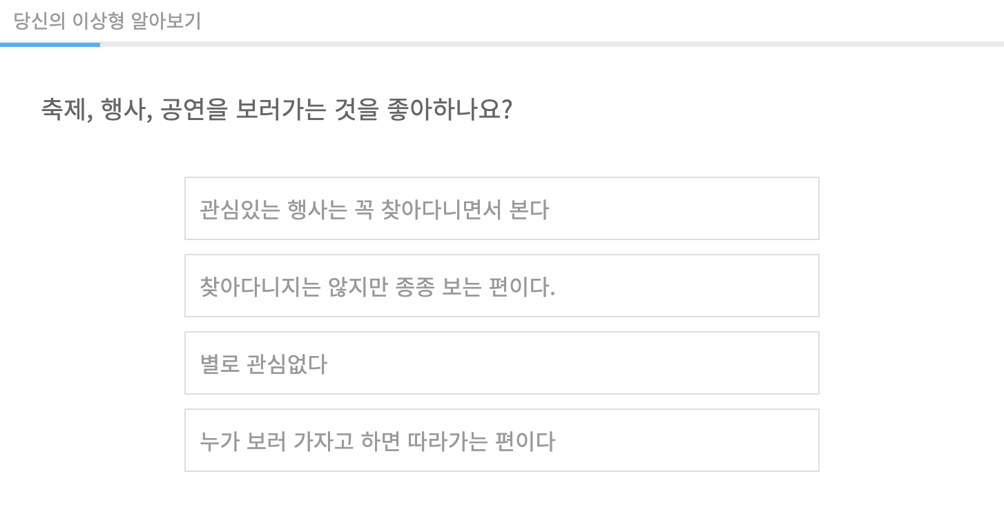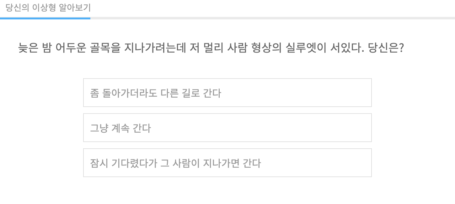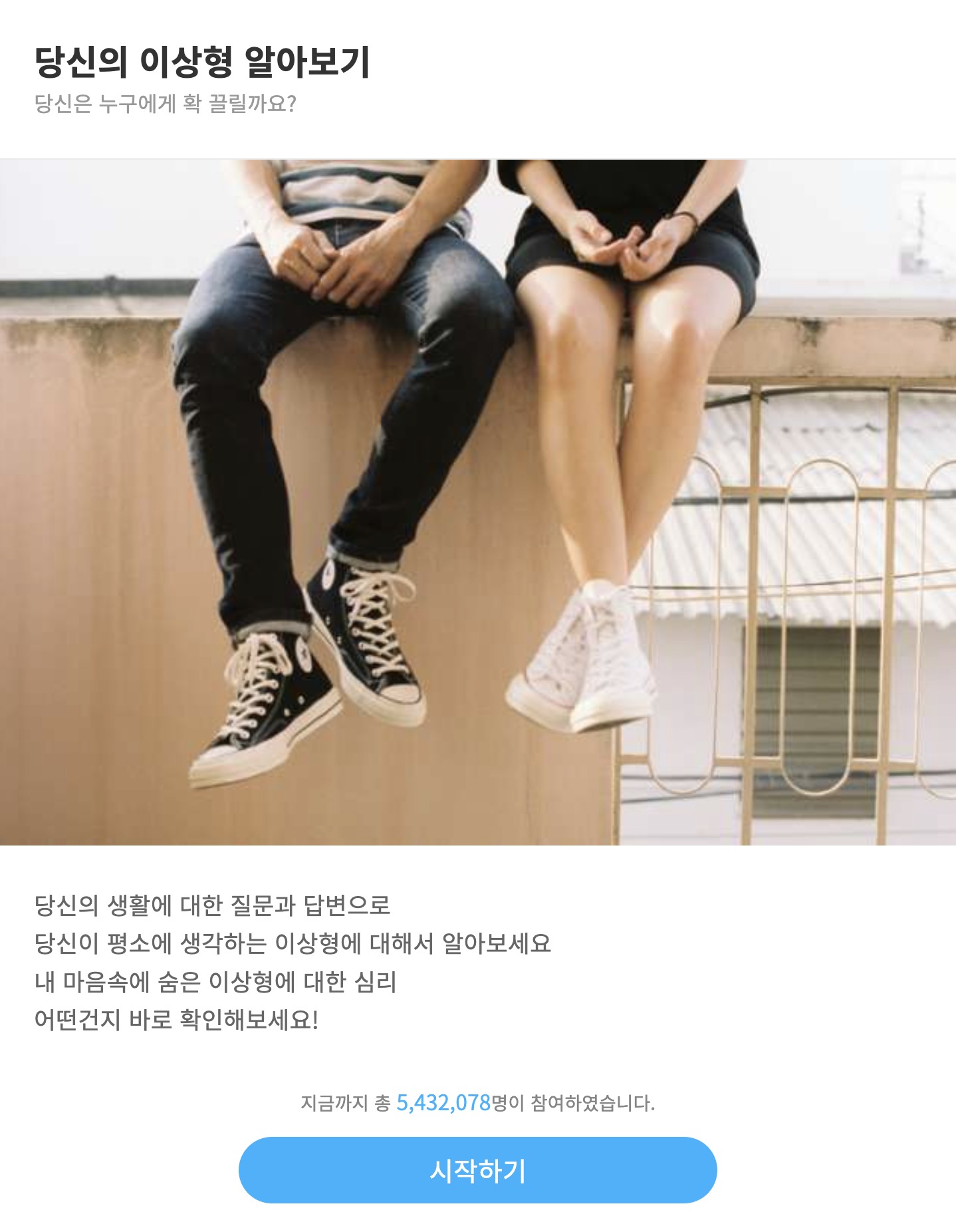 그럼 하단의 [이상형 만나러 가기] 버튼을 눌러서 시작해볼게요!