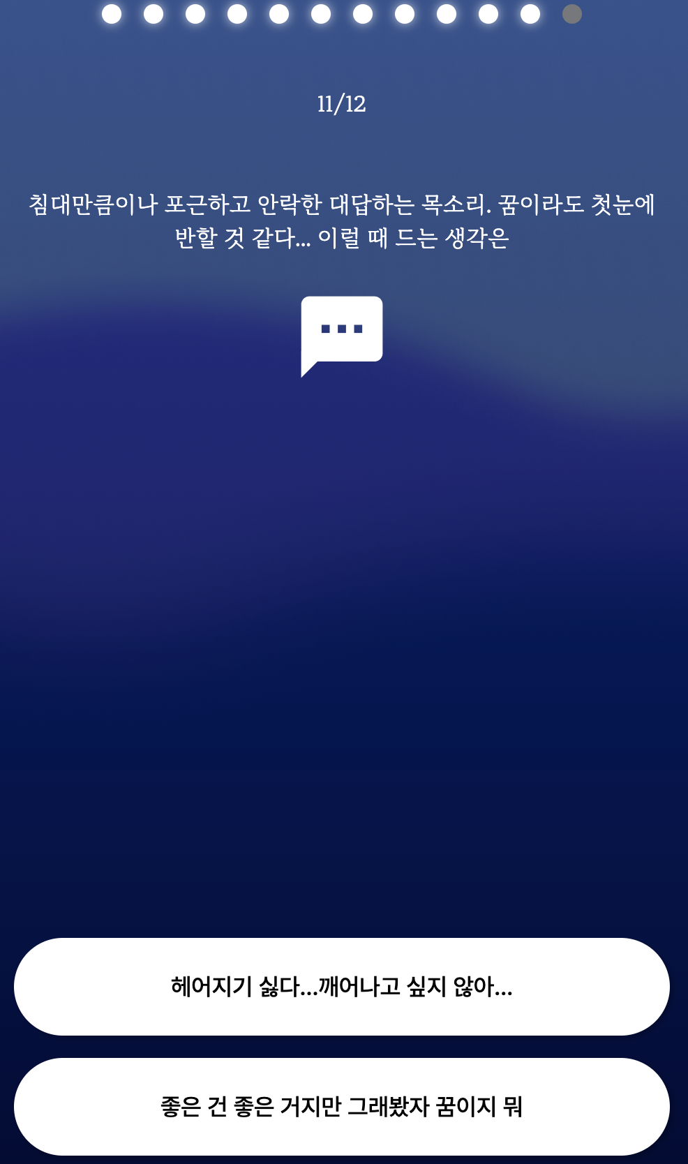 Q12. 걷다 보니, 이제 벌써 헤어질 시간이라는데... 꿈에서 깨어나기 직전 당신이 건넨 말은?