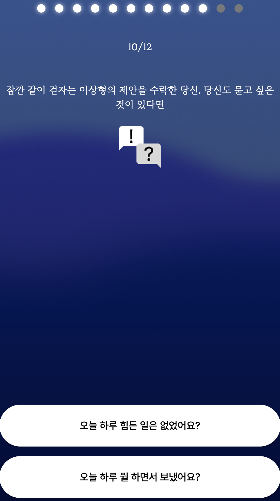 힘들었던 것을 묻기 보단, 오늘 하루가 어땠는지를 묻고 싶네요.