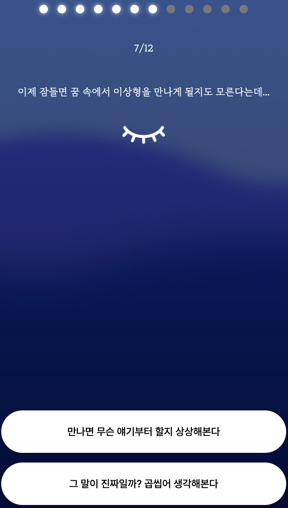 선택에 따라, 오늘 밤 내가 꿈 속에서 만날 최적의 이상형을 알 수 있을 거예요.