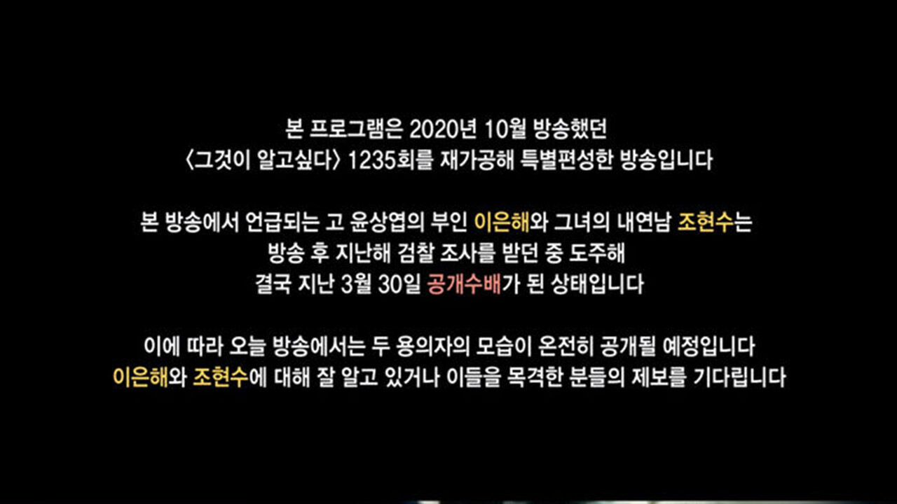 용의자 두 사람이 공개수배 되면서 사건을 방영했던 그것이 알고싶다 측에서도 유튜브 계정을 통해 공개수배 소식을 알렸다.