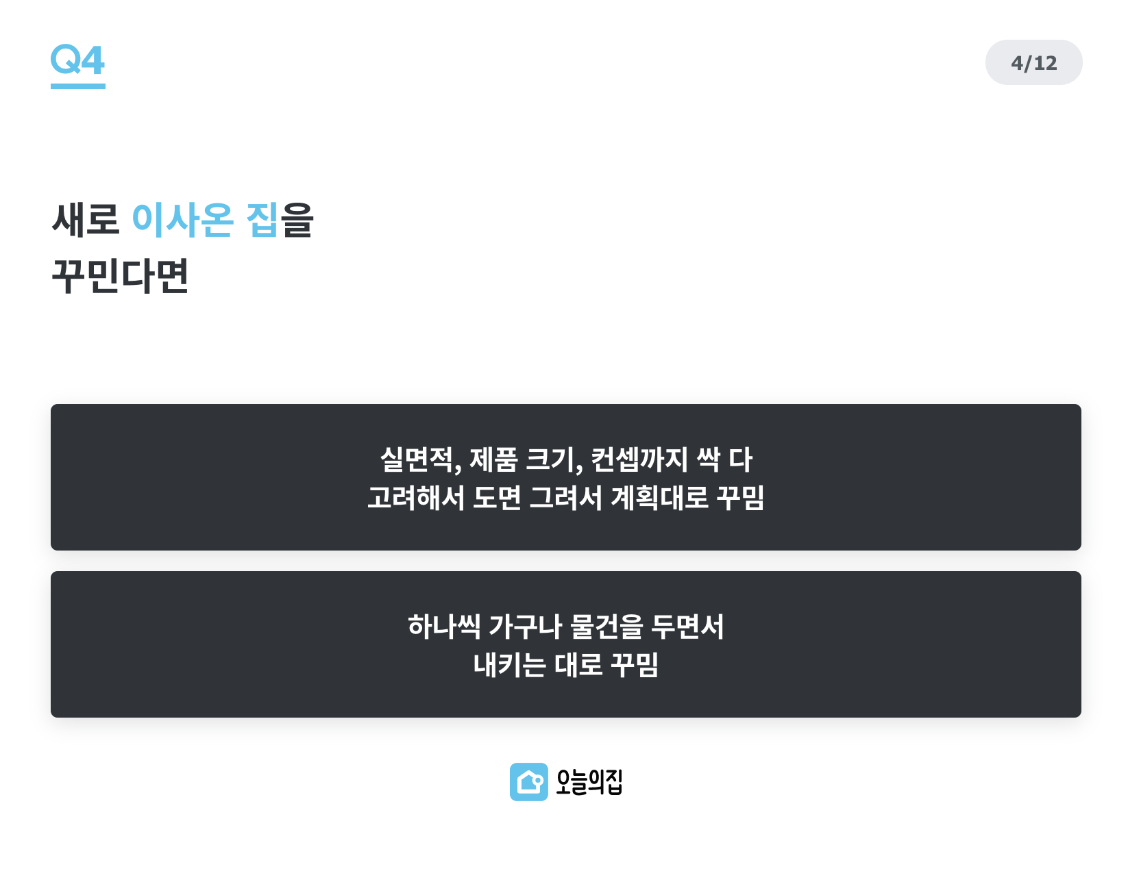 우리나라 1등 인테리어 집꾸미기 플랫폼 '오늘의 집'에서 전생집 테스트가 나왔어요. "나는 전생에 어떤 집에 살았을까?" 한번 알아볼까요?