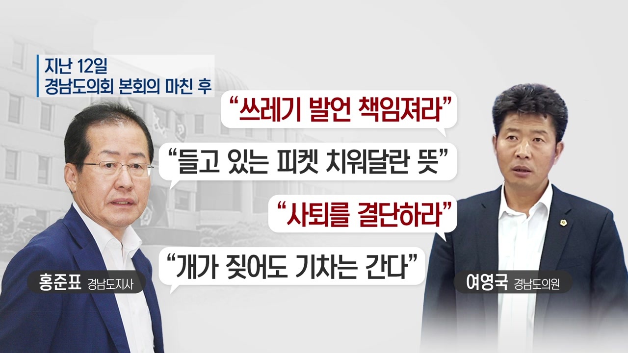 홍준표 당시 경남지사가 여영국 당시 경남도의원에게 '쓰레기'라 막말을 한 것이 알려져 주목을 받았다. 정치 성향이 다른 만큼 두 사람은 평소에도 경남도의회 도정 질문 때 설전을 벌이는 일이 잦았다. 보수 정치인들 중에서도 강성 우파로 분류되는 홍준표 당시 지사와 반보수 정당 중에서도 강성 좌파로 분류되는 정의당 소속의 여영국 당시 의원은 태생부터가 강하게 대립할 수밖에 없었던 운명이었다. 새누리당 소속 의원의 의석 수가 압도적이었던 10대 경남도의회에서 진보정당 소속 의원은 여영국 의원이 유일했기 때문에 여영국 의원은 홍 지사의 임기 내내 도의회 내에서 홍준표 지사의 활동을 강하게 견제하는 거의 유일한 의원이었다. 민주당 소속으로 당선된 2명은 비례대표였기 때문.