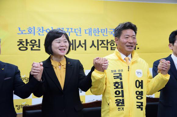 하필 막판에 그 자유한국당 대표의 경남 FC 경기장 유세 논란 관련 실책으로 인해 해당 경기장이 위치한 사파동 주민들이 대거 분노하여 여영국 후보에게 몰표를 주는 바람에, 초반 개표중 득표율로는 많게는 10%까지 뒤져치지다가 개표 끝무렵에 가서야 0.5%, 504표차라는 아슬아슬한 차이로 극적인 역전승을 하며 20대 국회의 일원이 되었다.