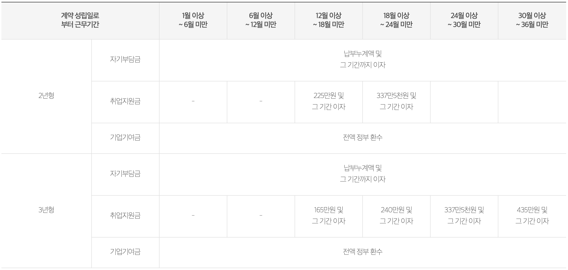 계약 성립일로부터 근무기간1월 이상~ 6월 미만6월 이상~ 12월 미만12월 이상~ 18월 미만18월 이상~ 24월 미만24월 이상~ 30월 미만30월 이상~ 36월 미만