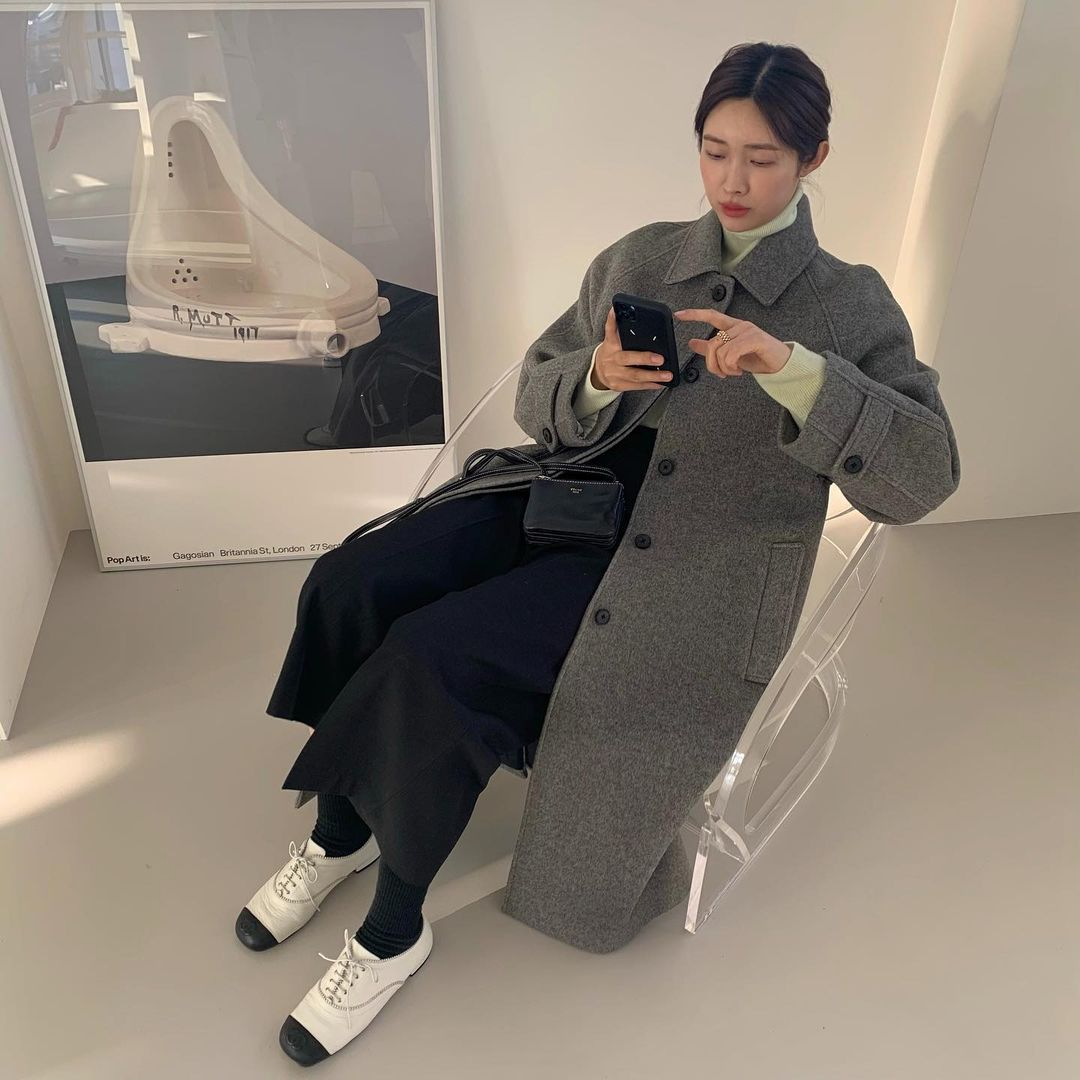 코트는 leeseed(리시드)의 래글런 싱글 코트 [Herringbone Gray] 색상이에요.