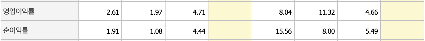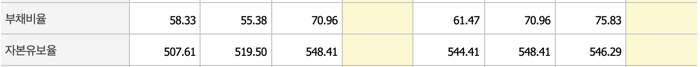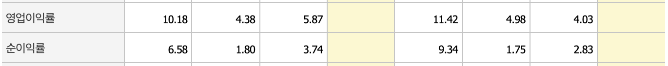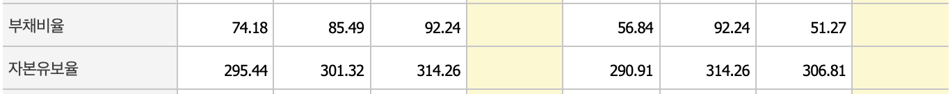 영업이익이 크지 않지만 전년에 비해 2배 늘어나고, 영업이익률과 순이익률로 크게 늘었습니다. 부채비율도 낮아지고 있습니다.
