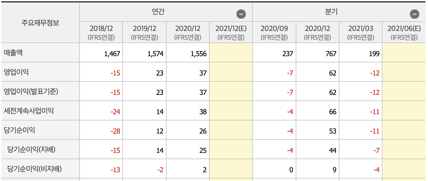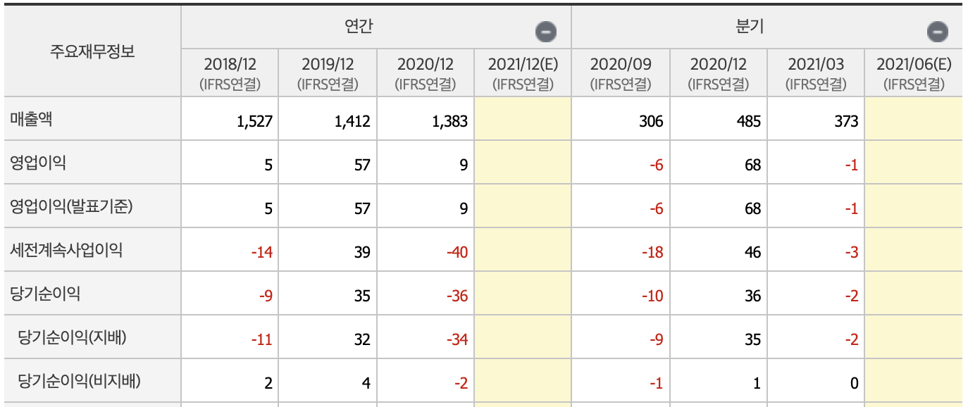 재무정보로 봤을 때 매력적인 부분은 보이지 않습니다.