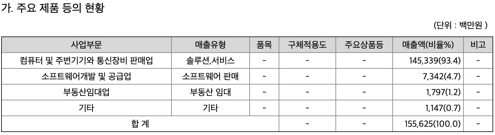 컴퓨터 및 주변기기와 통신장비 판매에서 90% 이상의 매출을 내고 있습니다.