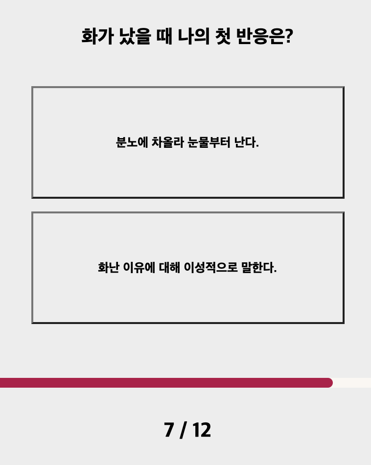 7, 8번은 감성적/ 이성적을 판단하는 질문이에요.